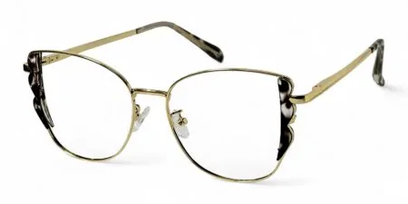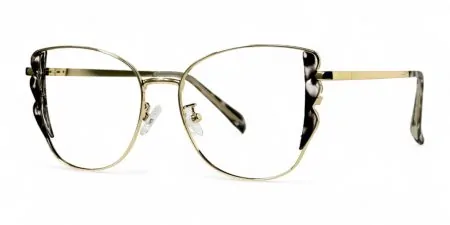 Feriva Cat Eye Glasses in Gold with patterned accents, designed with a classic fit for timeless everyday elegance. These frames bring sophistication and a refined edge to your daily style.